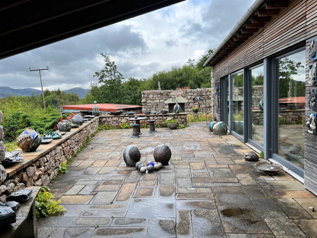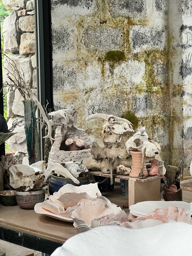 Am Westufer hat Lotte Glob ihr Refugium. Sie ist 1944 in Dänemark geboren und seit den 60ern hier am Loch zuhause. Damals als Mutter eine kleinen Tochter, ohne Geld und mit großen Ambitionen als Künstlerin baute sie sich ihren Brennofen selbst und wohnte kostenlos in einer Hütte. Heute lebt sie auf einem mehr als 3 Hektar großen Gelände in einem Haus, dass im Jahr 2015 der Archtekt Gökay Deveci baute und dafür sogar eine Preis bekam