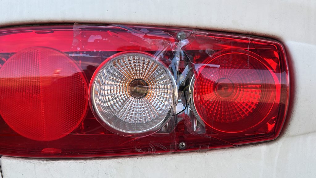 Erst sieht es nur nach einem Kratzer an der Box aus, aber dann sehe ich den Schaden, der linke Rückscheinwerfer hat was abbekommen. Sch… !!!! Die Lichtprobe zeigt: alles okay außer… der Blinker. Was nun? Leichte Ratlosigkeitr macht sich breit. Hier oben in der Einsamkeit, da kennt noch nicht einmal Google Maps eine Werkstatt… ich rufe beim ADAC an, vielleicht wissen die Rat… außer einer langen Leitung hat da keiner was für mich, ich soll ne Mail schreiben ???? weil alle Leitungen besetzt sind ????
