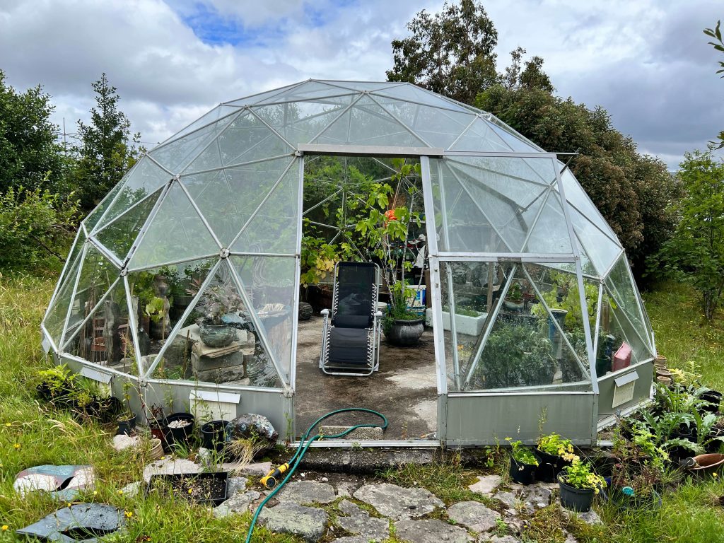 Mit durchnässten Schuhen komme ich zurück zum Haus, neben dem ein wunderbares Gewächshaus aufgebaut ist. Offenbar ein Ort zum Verweilen.