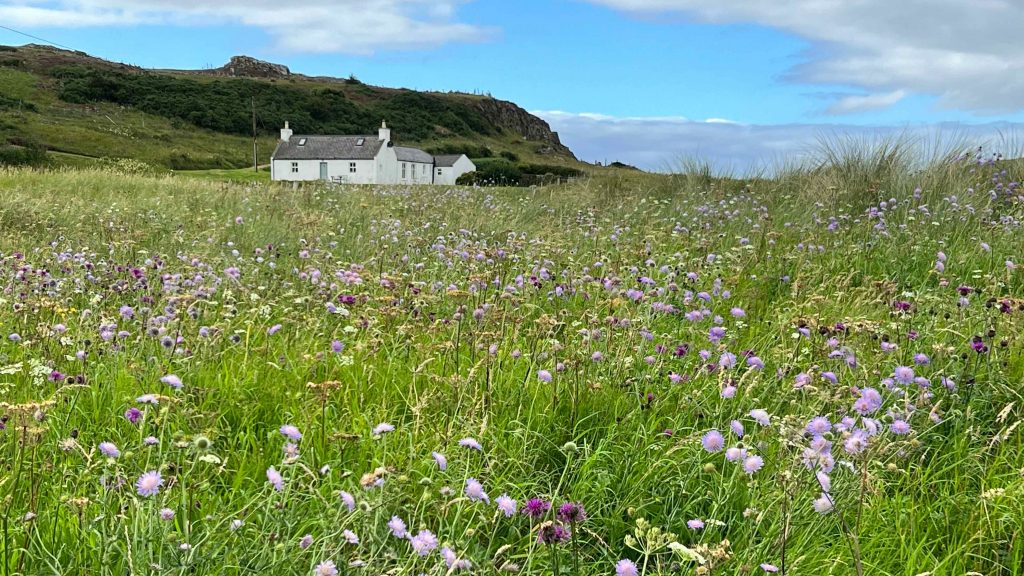 Alles scheint wie in dieser magischen Landschaft entstanden. Vom Broch hinab führt ein Weg, an dessen Rändern es aussieht, als würden die Seiten der Bücher herausgeflogen sein.