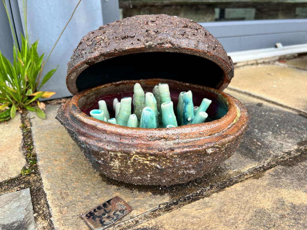 Auch verschiedene andere tönerne Kunstwerke sind hier und da mit der Landschaft verwachsen , oft so, als seien sie fallen gelassen, vergessen, von selbst gewachsen. Und scheinbar soll man wirklich auf Entdeckungsreise gehen, so nahe am privaten Refugium der Frau Lotte.