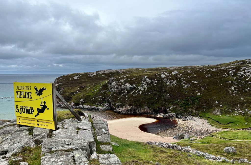In dieser Gegend gibt es fantastische Buchten und Sandstrände. Das Wetter lädt nur gerade so überhaupt nicht zum Baden ein. Dafür könnte man aber etwas anderes probieren: Zipline