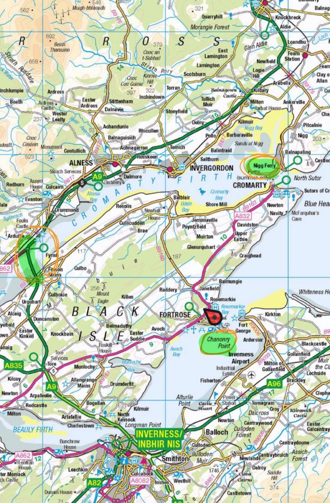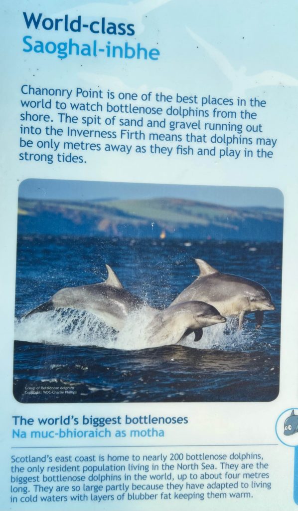 Ein Ziel steht heute noch auf dem Plan: Auf der nun erreichten Black-Isle, die ihren Namen der fruchtbaren Erde und dem milden, meist frostfreien Klima verdankt, gibt es den Ort Fortrose. Die dortige Landzuge Chanonry Point ist laut eigenem Bekunden der beste Ort auf der Welt, um von Land aus Delphine beobachten zu können.
