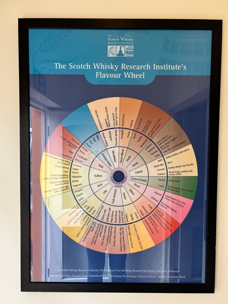 Auch die Art und Qualität der Fässer spielt eine Rolle und so gibt es eine unheimliche Vielfalt an Geschmacksnoten, die ein Wishkey entfalten kann, hier zusammengefasst vom Scottisch Whiskey Research Institute.