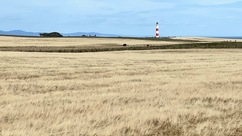 Weiter gehts zu Spitze – Tarbart Ness – mit einem klassisch rot-weißen Leuchtturm, vorbei an den Getreidefeldern aus denen wahrscheinlich der so beliebte Glenmorangie gebrannt wird. Eine wahre Abwechslung zum sonst zu unverwüstlichen Grün der Wiesen im schottischen Norden.