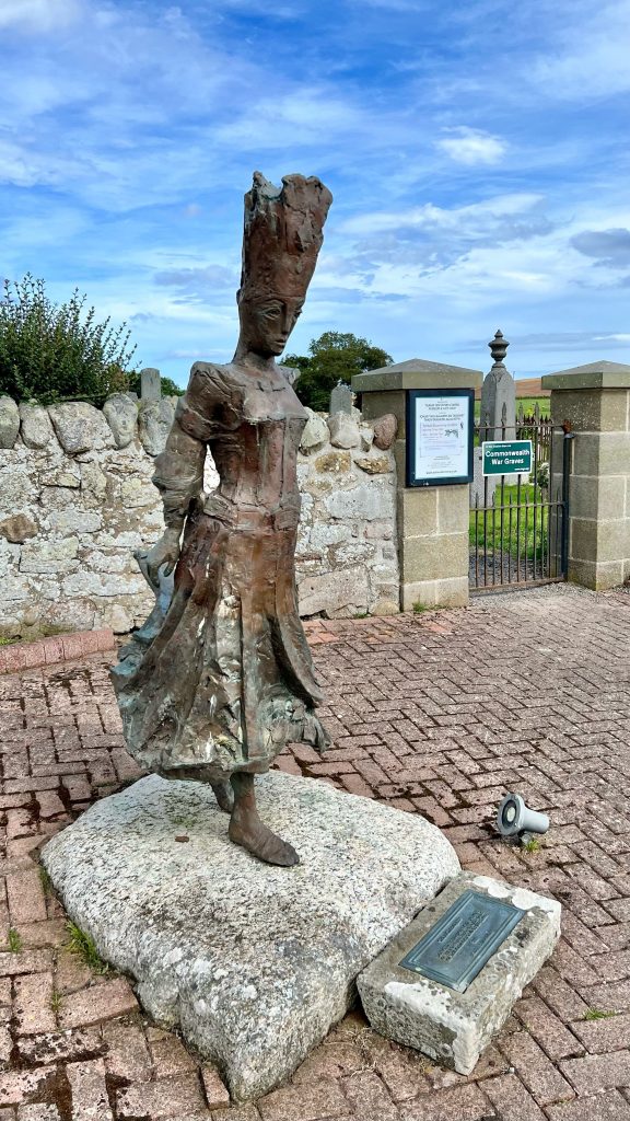 Verabschiedet werde ich vor der Ausstellung von einer stolzen Dame – der Pikten-Königin – einer zeitgenössischen Skulptur.