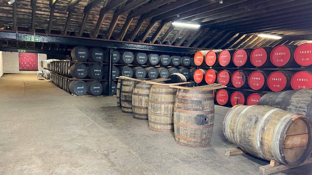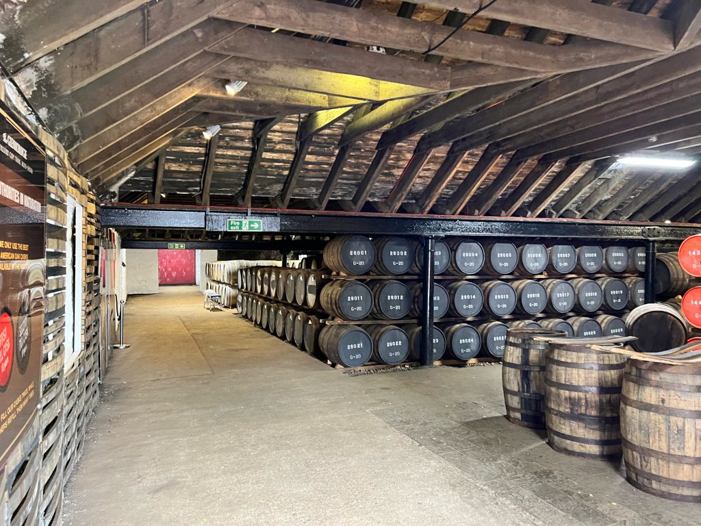 Am beeindruckendsten sind für mich aber die Lager mit den alten Eichenfässern. Da während der Reifung ungefähr 60% der Geschmacksrichtungen entstehen, ist diese besonders wichtig und beim Glenmorangie ausgewiesener Maßen exzellent. Traditionelle Lagerhallen mit Lehmboden, Steinmauern und Schieferdächern sorgen gemeinsam mit dem relativ gleichbleibenden Klima für gute Temperatur und Luftfeuchtigkeit. Wer weiß, wieviele Liter unter diesen Dächern reifen…