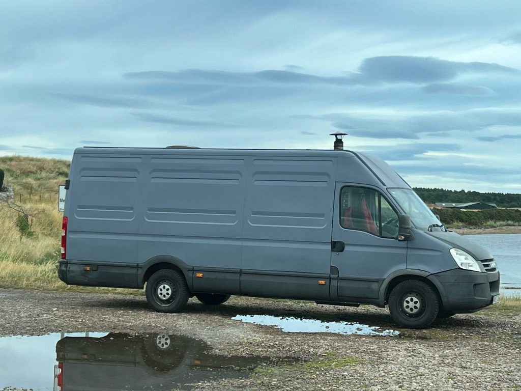 Der große dunkle Van hat keine Fenster. Aber einen Schornstein auf dem Dach. Niemand ist zu sehen, nur ab und zu läuft mal der Motor. Dann fährt er weg doch nach einer Stunde steht er wieder da. Keiner zu sehen. Noch 4 weitere Übernachtungsgäste stoßen mit Van oder Zelt dazu, Frankreich, Deutschland, Schottland, aber da lässt sich keiner sehen.