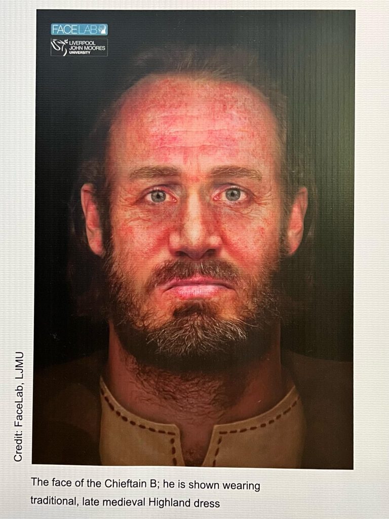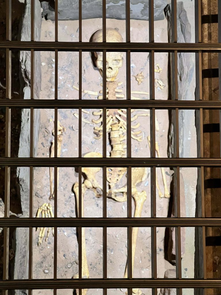Auch das Grab eines Clanchefs wurde eröffnet und untersucht. Mit 4 anderen Totenschädel wurde er hier bestattet – wer das wohl gewesen ist und: mussten die extra sterben??? – und das ”FaceLab” hat sogar rausbekommen, wie er früher mal aussah. Eine Rekonstruktion seiner Überreste liegt dem Besucher zu Füßen und kann durch Gitter begutachtet werden.