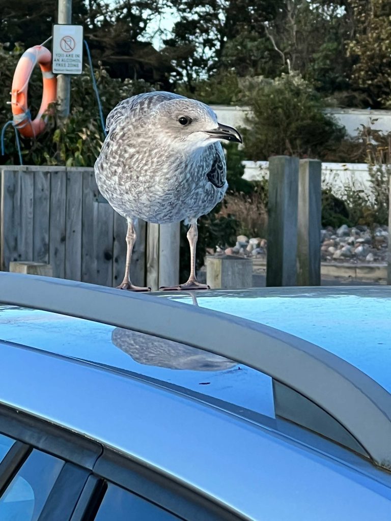Der Skipper kam freundlich ans Fahrerfenster und meinte, er würde liebend gern mein Geld nehmen, aber das Auto sei zu lang. Der setzt beim Drauffahren auf, sorry. Na dann Ahoi mein kleines rotes Schiff. Machen wir halt den ”Einkehrschwung” an den nahegelegenen Strand zur verspäteten Mittagspause.