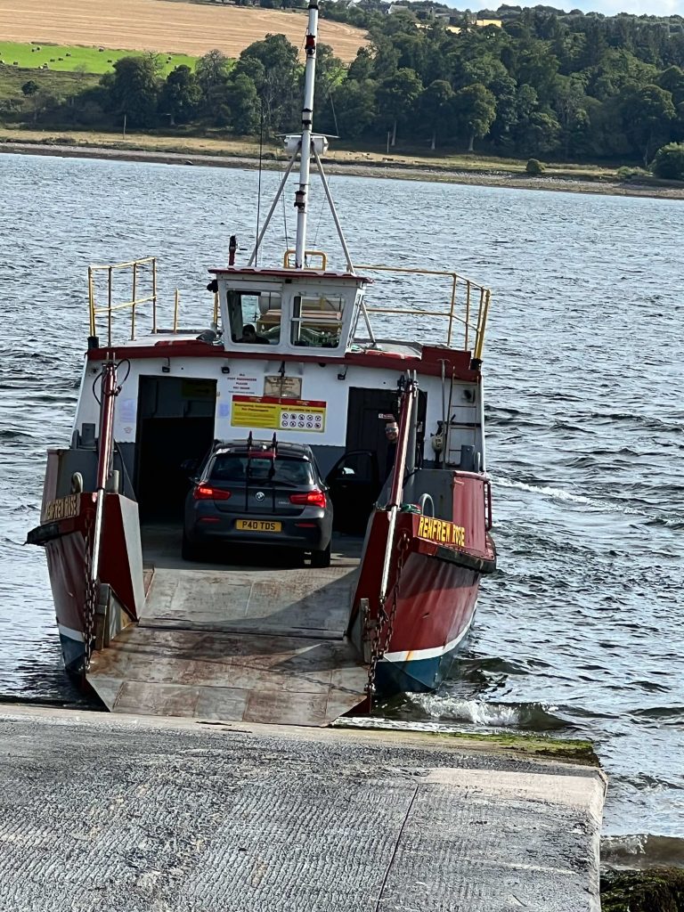 Es gibt zwei Möglichkeiten, über den Cromarty-Firth zu kommen: die Brücke oder die kleine Nigg-Fähre, die nur im Sommer verkehrt. Ich entscheide mich für Letztere und hoffe,. dass ich Glück habe. Unterwegs warnen kleine Schilder, man solle sich bei Instagramm über die aktuelle Lage der Fähre informieren…