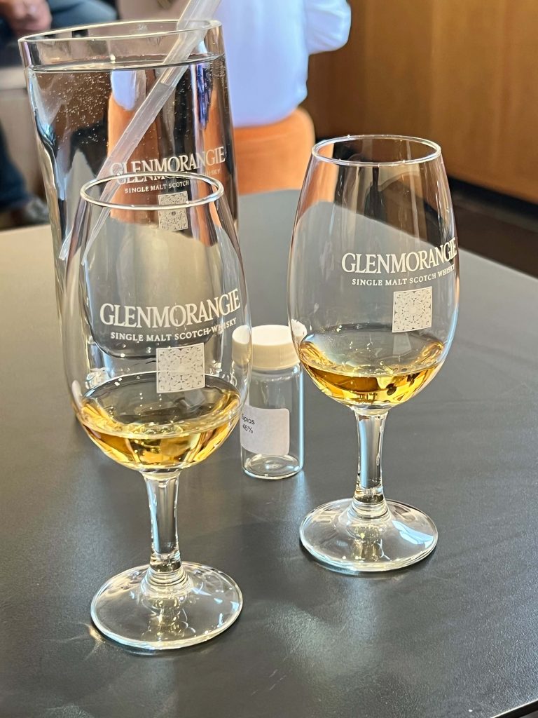 Nahe am Dornoch Firth liegt also seit 1843 die Glenmorangie Distillery. Zuerst war das eine Brauerei, dann wurde auf dem Gut eine Whiskybrennerei eröffnet. Der Name leitet sich vom gälischen Gleann-Moor-na-sithe ab und bedeutet so viel wie ”Tal der Ruhe”.