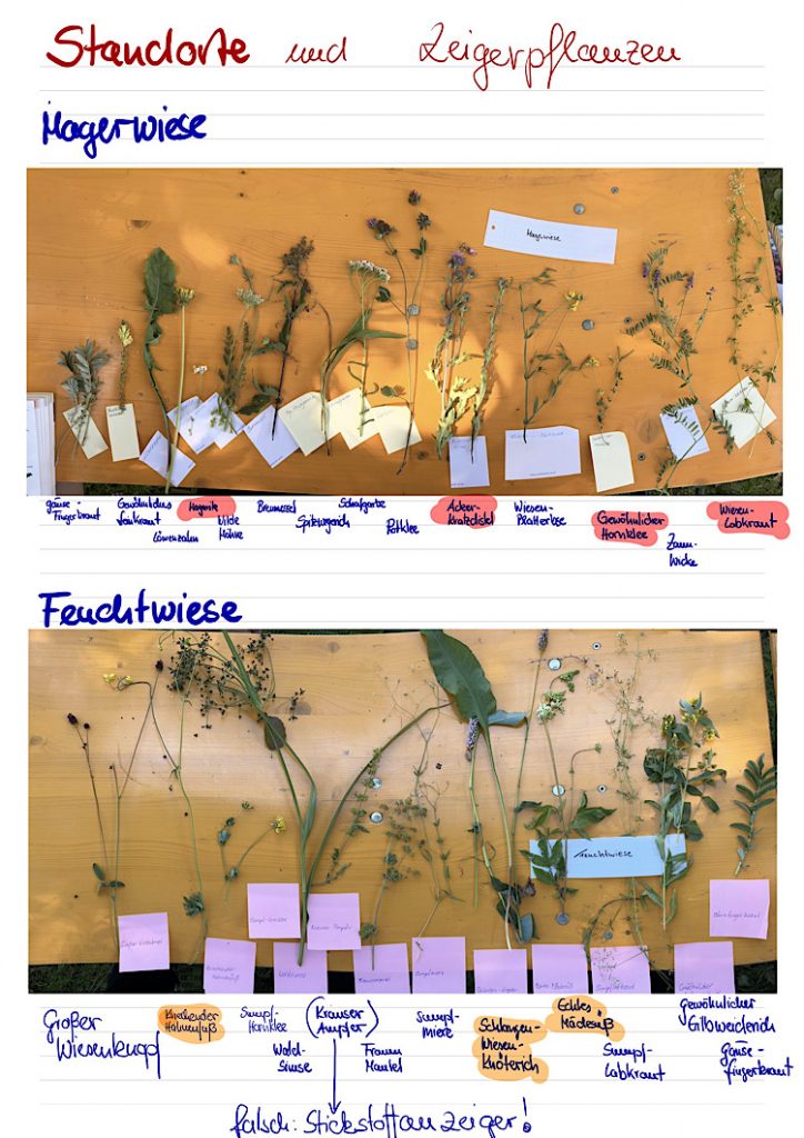 Das Wochenende war wunderbar. Alle werdenden Kräuterpädagogen hielten der Affenhitze stand und wir haben wieder viel gelernt, ausprobiert, erlebt und bestaunt. Wisst ihr, was Zeigerplanzen sind? Hier haben wir sie mal nach Lebensraum sortiert und die markierten Kräuter, das sind die Anzeiger für das jeweilige Biotop.