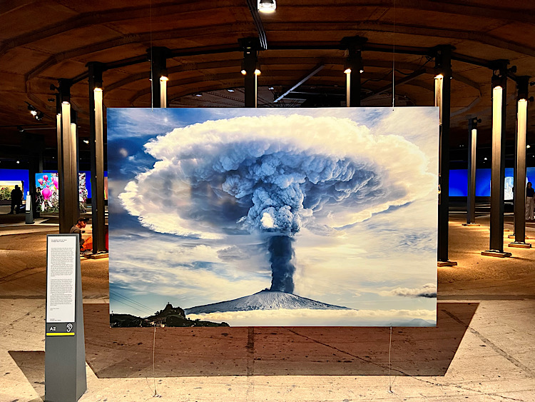 Auf drei Etagen sind hier Fotografien, Videos, Installationen zum Thema Erde vereint. Zuerst wird die Schönheit gefeiert. Hier auf dem Bild von Giuseppe Mario Famiani sieht man die geballte Kraft und des Ätna bei seinem Ausbruch 2015.