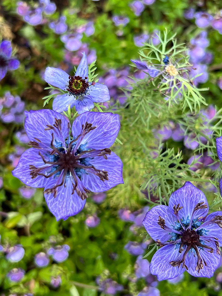 Verschiedene Gartenräume wurden angelegt und mit Pflanzen bestückt. So gibt es z.B. einen Rosen-, Bauern-, Kräuter-, Staudengarten. Aber auch einen Trocken- und einen weißen Garten kann man durchwandeln. In dieser Jahreszeit sind viele Rosen zwar schon verblüht, aber trotzdem trifft man auf eine schier unfassbare Vielfalt von Farben, Formen und Gerüchen. Immer wieder entdecke ich eine neue Blütenform und kann mich kaum lösen.