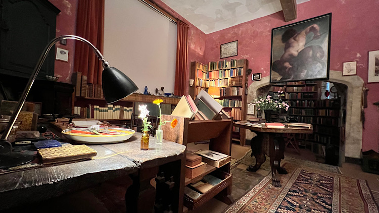 Die Idee, dort ein Arbeitszimmer einzurichten schien ihr romantisch und heute kann man das ihre noch so sehen, wie sie es bei ihrem Tod 1962 hinterlassen hat. Nur wenige Gäste durften schon zu ihren Lebzeiten hinein. Auch ich schaue nur durch ein Gitter in den verdunkelten Raum.