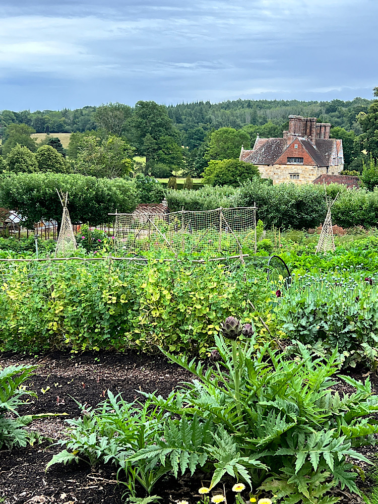 Betritt man den Park, empfängt einen der wunderbare Gemüsegarten. Bohnen, Zwiebeln, Zucchini, Artischocken, Brunnenkresse und Rüben wachsen hier neben Obstbäumen und -sträuchern. Wie gern würde ich mich da für mein Mittagsmahl bedienen. Der Garten ist hübsch – aber kein Vergleich zu Vitas Blumenmeer. Man kann zu einer kleinen Mühle wandern und das Haus besichtigen, so wie Herr Kipling es in den 30ern zurückließ.