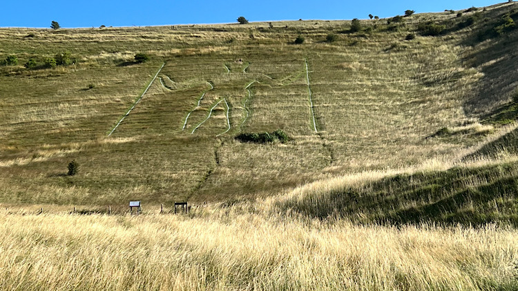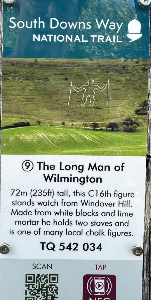 Noch ein weiteres Kunstwerk haben die hiesigen Ahnen in die umliegenden Hügel geritzt. Den „Long Man of Wilmington“. Zwei Speere trägt er mit sich, wurde hier um 1710 entdeckt.. alles andere ist mysteriös.
