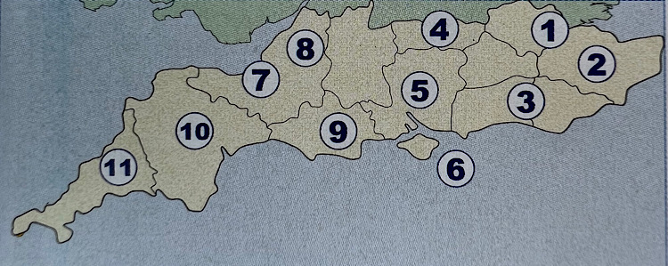 Gestartet sind wir bei 2… das ist die Grafschaft Kent, auch der „Garten Englands“ genannt. Jetzt sind wir bei 3 … Ost und West Sussex und morgen gehts in Richtung 5… Hampshire.