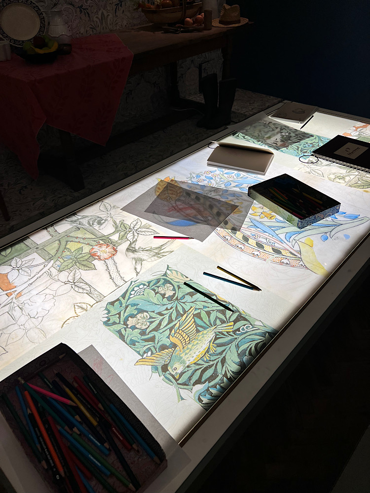 Im Ausgangsbereich des Museums kann man nun selbst aktiv werden und á la William Morris, gleich dem Chefdesigner der „Art & Crafts“ Bewegung zum Zeichenstift greifen.