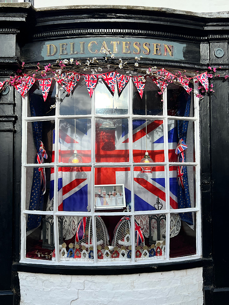mit einem „Delicatessen“-Laden, der im Schaufenster die neue Königsfamilie in der Auslage hat…