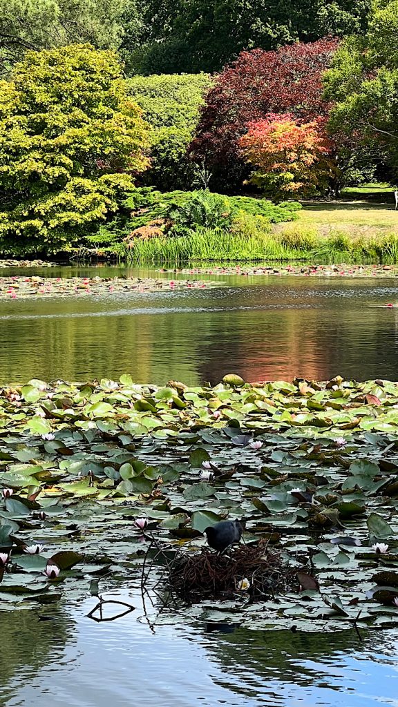 Mein nächstes Ziel ist wieder mal ein Gartenreich: Sheffield Park. Eigentlich sollte der „Dicke“ noch einen Stopp bei Virgina Woolfe einlegen, aber leider öffnet ihr „Monks House“ erst am kommenden Donnerstag wieder. Deshalb laufen wir bald bei herrlich sonnigen Wetter und angenehmen Temperaturen durch das nächste Anwesen des National Trust. Vier Seen sind mit wunderschönen Seerosen bestückt, Ahorn und Sequoia säumen den Weg und hinten blitzen die Fassaden des Herrenhauses auf, dass leider nicht zu besichtigen ist. Privat!