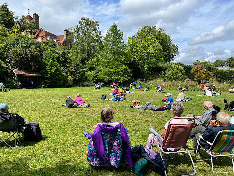 Zum Mittag gibts einen Salat im Womo. Luna musste schon auf mich warten, als ich durch die Villa schlenderte. Aber zum Gartenkonzert um 14:00 Uhr sind wir dann beide wieder mit von der Partie. Zwei junge Männer mit Piano und Gitarre singen klassische Jazzsongs und Alt und Jung verbringen ihren Sonntagnachmittag auf dem Rasen beim National Trust. Herrlich! und völlig tiefenentspannt.
