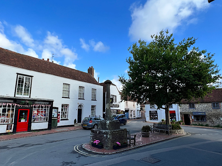 Wir sind im Bogen gefahren. Ein Blick auf die Karte zeigt es. Das kleine und in den Reiseführern als besonders schön beschriebene Örtchen Alfriston liegt keine 500m Luftlinie hinter uns.