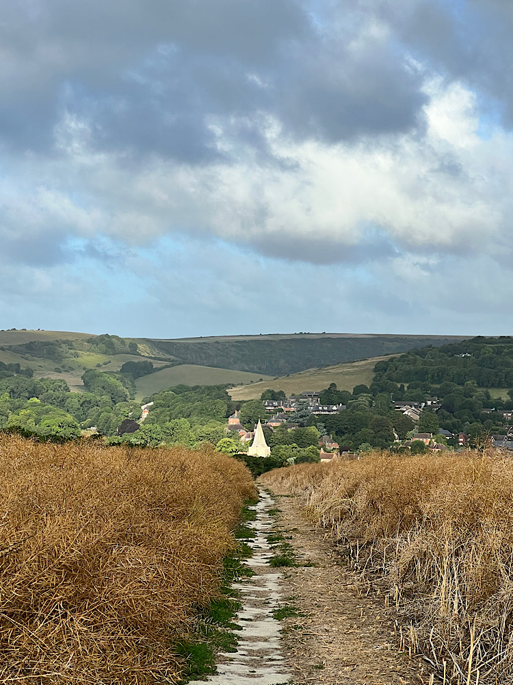 Als wir dann gegen 9:00 die Pferde satteln sind schon einige Wandergruppen – hauptsächlich Mädchen so um die 14 Jahre alt, mit riesigen Rucksäcken und Wanderkarten bestückt an uns vorbeigezogen. Sie kommen mir fast vor wie Pfadfinder. Aber wir befinden uns hier ja auch an einem wichtigen Wanderweg, dem South Down Way. Das ist ein 160km langer Fernwanderweg von Winchester nach Eastbourne durch Englands jüngsten Nationalpark – dem South Down NP – und im folgenden Video wurde er von oben wundervoll in Szene gesetzt.