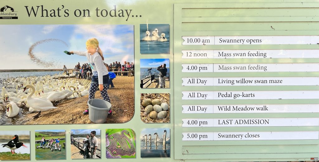 Die Mönche der nahegelegenen Abtei legten in der kleinen Lagune schon 1393 eine Kolonie von mehr als 800 Schwänen an, die in königlichen Kreisen noch bis in die 50er Jahre als Delikatesse galten. Auch die Daunen waren natürlich beliebt. Heute kann man einige Exemplare – die immer noch der Krone gehören – für 12 Pfund begutachten. Aber es gibt natürlich noch mehr zu sehen und zu tun…