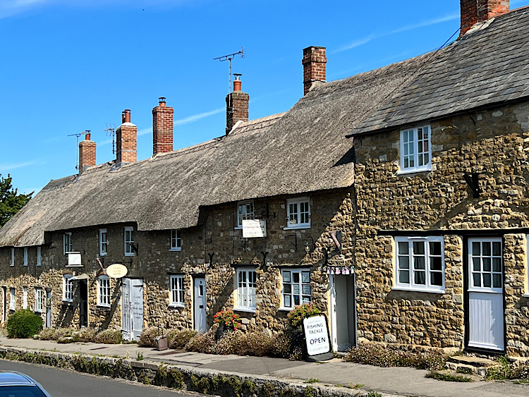 Kleine reetgedeckte Häuschen säumen die Straßen und ab und zu gibts eine Galerie oder ein Lädchen… oder wie hier eine Ferienwohnung.