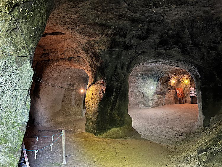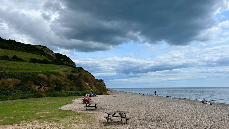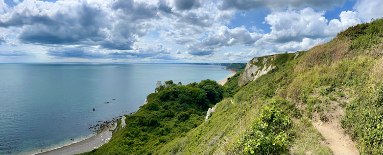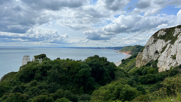 Wenn ein Reiseführer das Dörfchen Branscombe so beschreibt, dann muss ich da einfach hin. Aber wenn dort noch steht, dass man sich die Idylle durch unfassbar enge Zufahrtsstrassen erkaufen muss, so haben die Polizisten derweil Fakten geschaffen: keine Durchfahrt für Womos. Deshalb parke ich den Dicken auf dem großzügigen Parkplatz der Quarry Cave, einer Höhle oberhalb des Ortes. Von hier aus kann man einen Rundgang über Branscombe nach Beer und wieder zum Ausgangspunkt unternehmen. Und schon kanns losgehen.