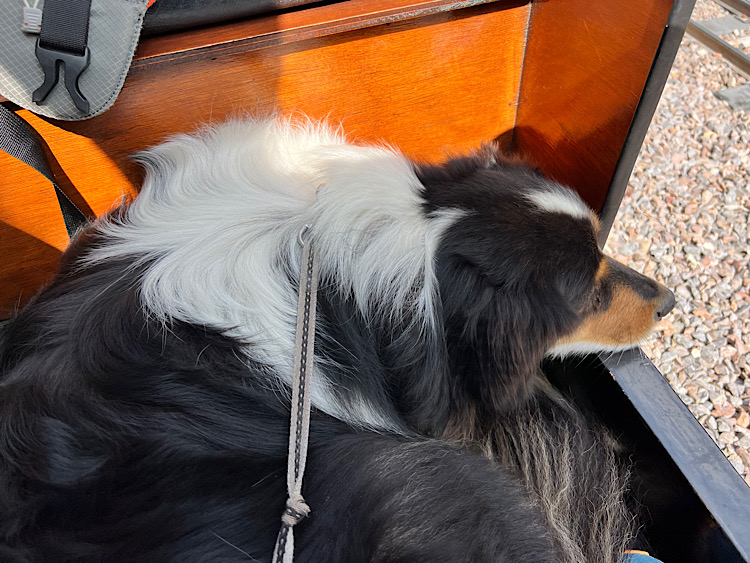 Luna ist die Sache am Anfang suspekt, dann entspannt sie sich und im Ankunftsbahnhof passe ich einen Moment nicht auf und sie springt aus dem noch fahrenden Zug… was kein wirkliches Problem ist, denn der fährt kaum noch Schritt und sie läuft – zur Freude der Passagiere – das letzte Stück nebenher an der Leine.