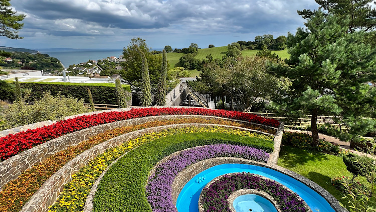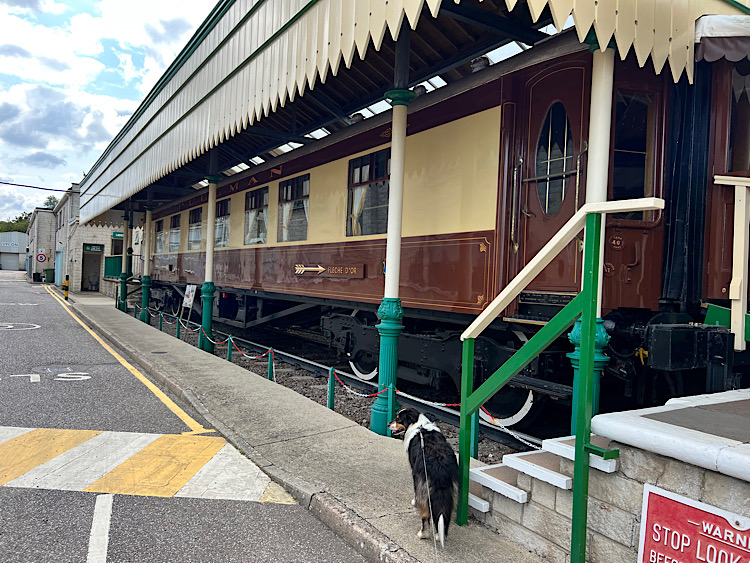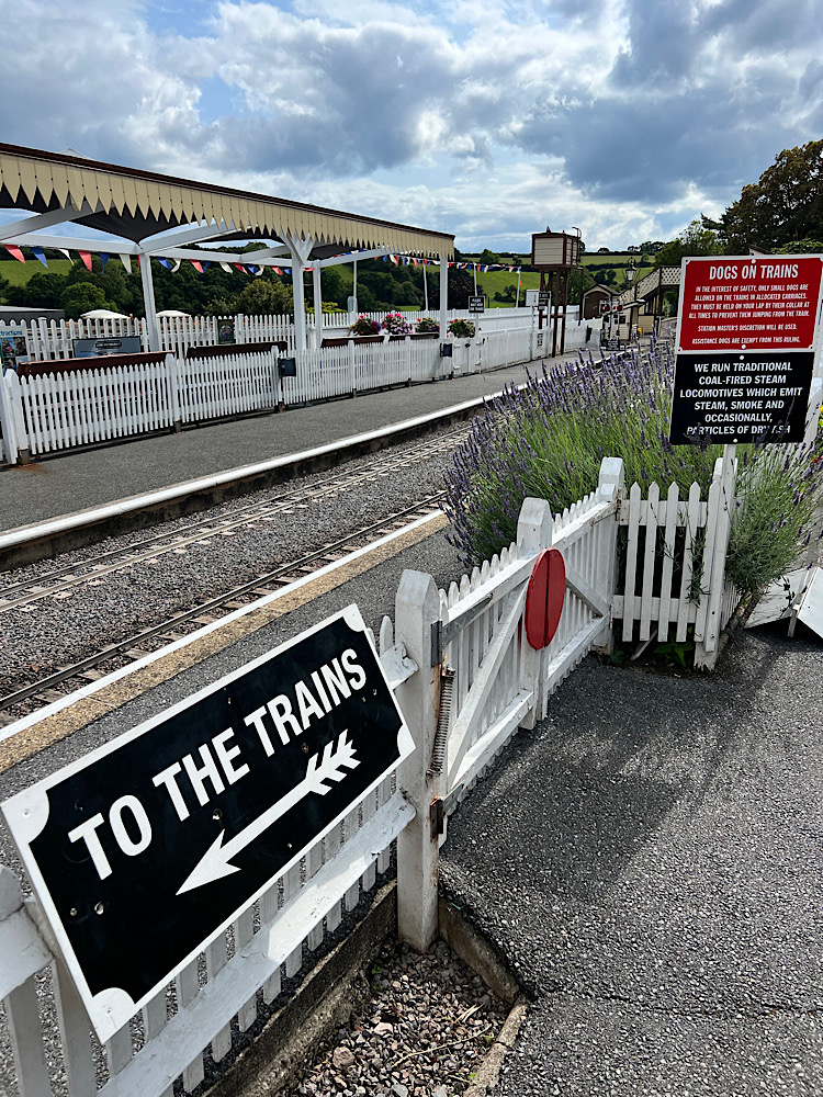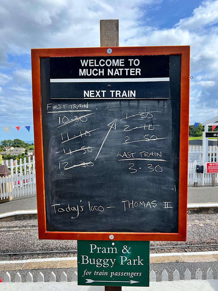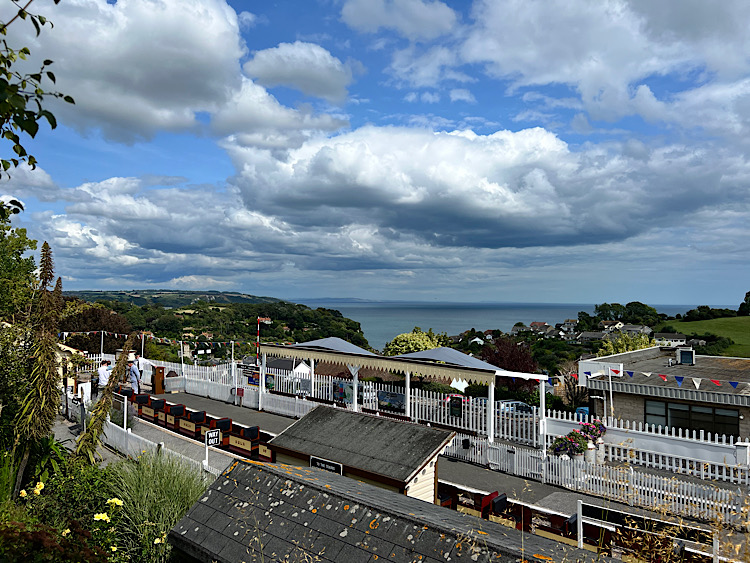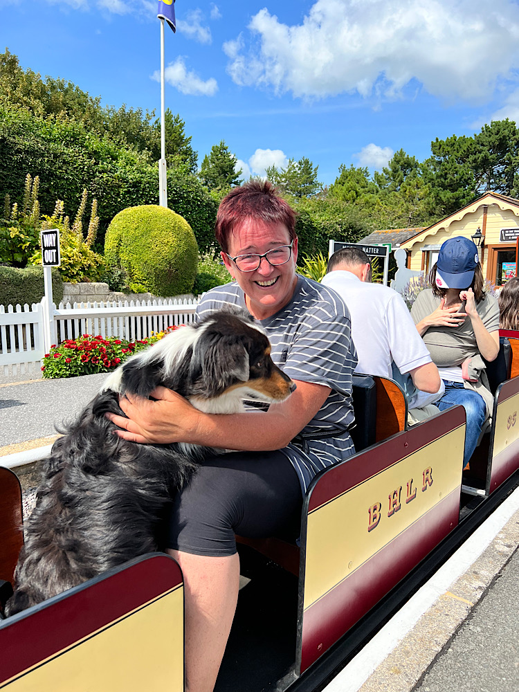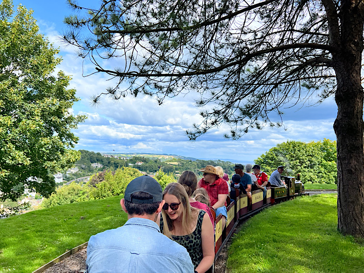 „Hier fahren wir mit traditionell kohle-befeuerten Dampflokomotiven“ steht auf dem Schild und auch der Schaffner, die Trillerpfeife und der Lokomotivenpfiff sind authentisch. Und so fahren wir 10 Minuten durch einen superschönen Park mit Ausblick auf die Bucht von Beer auf einen minikleinen Bahn. Die Spurbreite scheint mir nicht mehr als 30cm zu sein…