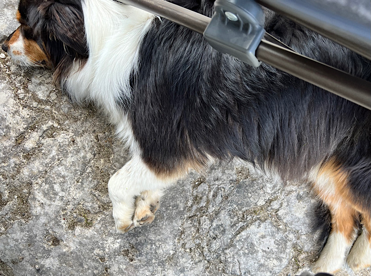 In der Höhle brennt noch Licht… und mir ist, als höre ich ein Geräusch… sicher die Fledermäuse. Wir gehen zurück zum Auto und Luna ist erst einmal breit für heute.