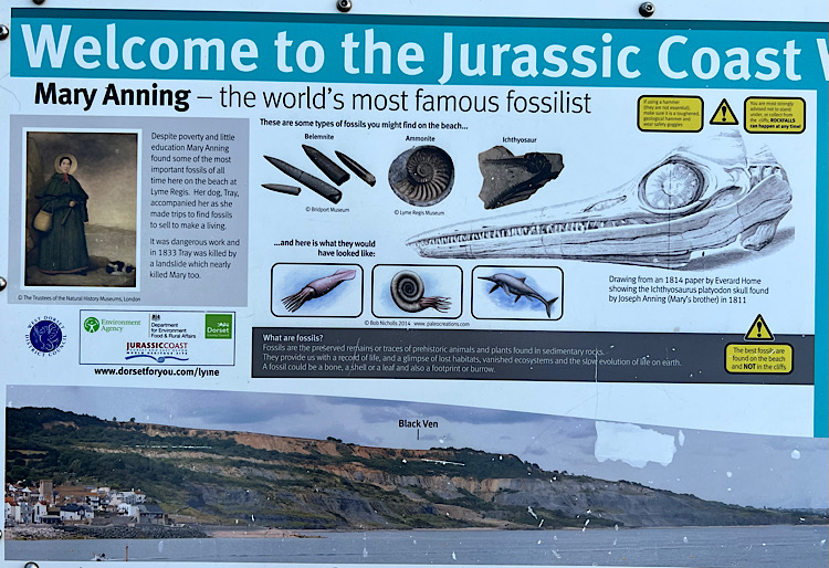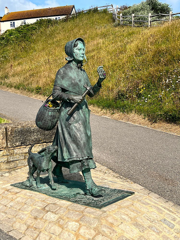 Als die zwölfjährige Mary Anning an diesem Tag aufwachte, ahnte sie nicht, was sie heute am Strand finden würde. In Lyme Regis lebte sie und buddelte 1811 ein elf Meter langes Ichtyosaurusskellet aus dem Sand. Damit löste sie ein Fossilienfieber aus, was in dieser Gegend bis heute nicht ganz verschwunden ist. Mary hingegen wurde – ohne das jemals studiert zu haben – eine der renommiertesten Paläontologinnen Englands und blieb ihrer Leidenschaft ein Leben lang treu. Mit ihrer Hündin Tray ist sie hier dargestellt.