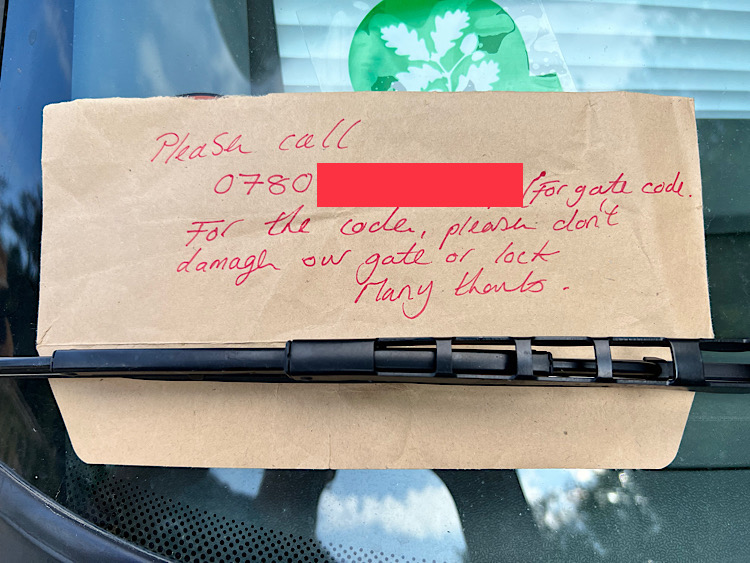 Dann war das wohl das Schließpersonal, was wir eben verpasst haben… naja, dann ist es eben so und der Stellplatz gar nicht mal so schlecht. Ich hatte gerade überlegt, ob ich heute noch in den Dartmoore-NP fahren sollte (heute beginnen hier die Ferien – also wird morgen viel Verkehr sein). Aber da hat mich das Schicksal ausgebremst. Eigentlich sehr gut, da kommt mehr Ruhe rein. Also ab über den Zaun und erst einmal die Küche angefeuert. Am Womo entdecke ich dann noch einen Zettel