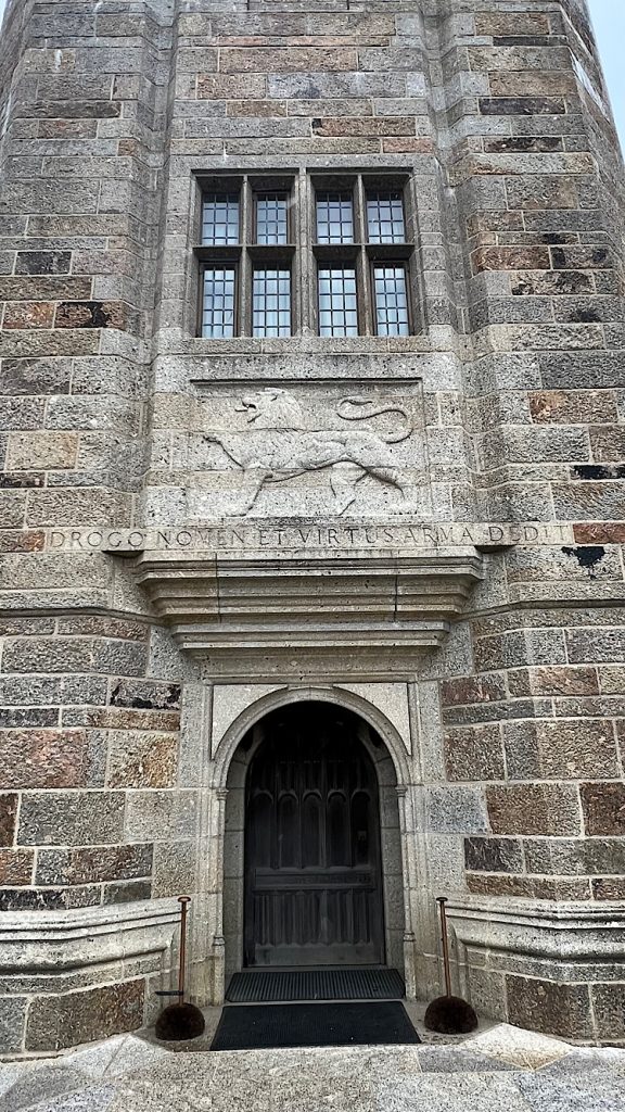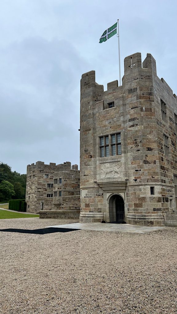 Die erste Wandertour habe ich bei Komoot gefunden und mich passend gekleidet. Der Startpunkt, Drogo Castle, gehört zum National Trust – heißt für mich kostenlos. Genial. Aber was soll ich sagen… noch nie sah ich ein scheußlicheres Castle.