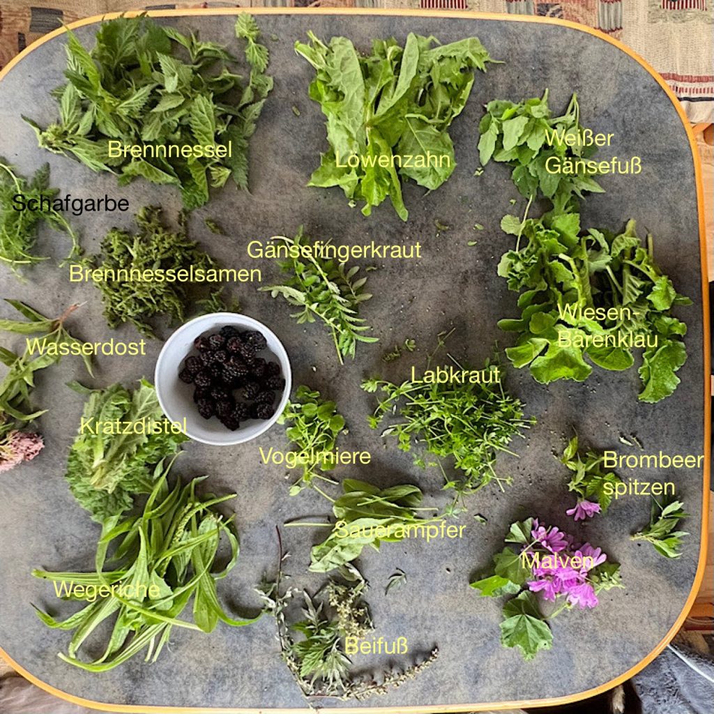 Auf dem Rückweg wende ich mich mal wieder intensiv den Wildpflanzen zu. Hier wächst und gedeiht natürlich alles wunderbar. Der Löwenzahn und die Wegeriche sind zart, frische Bärenklaublätter sprießen empor und ich finde sogar einen Brombeerbusch, der schon reife Früchte trägt. Da setzt die Sammelleidenschaft ein. Ringsum verdichtet sich der Nebel, doch als ich wieder aufblicke ist er genauso schnell wieder verschwunden.