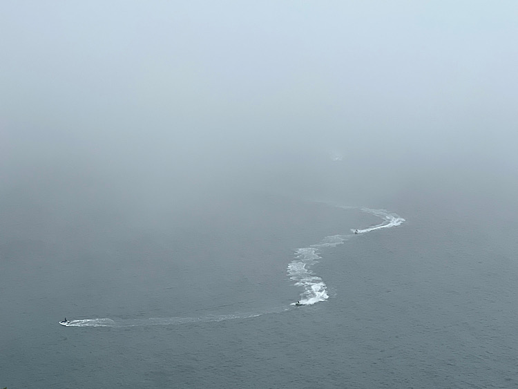 Die Farbe des Tages bleibt weiterhin Grau, doch davon lassen sich begeisterte Jetboat-Fahrer und wir natürlich auch nicht beeindrucken.