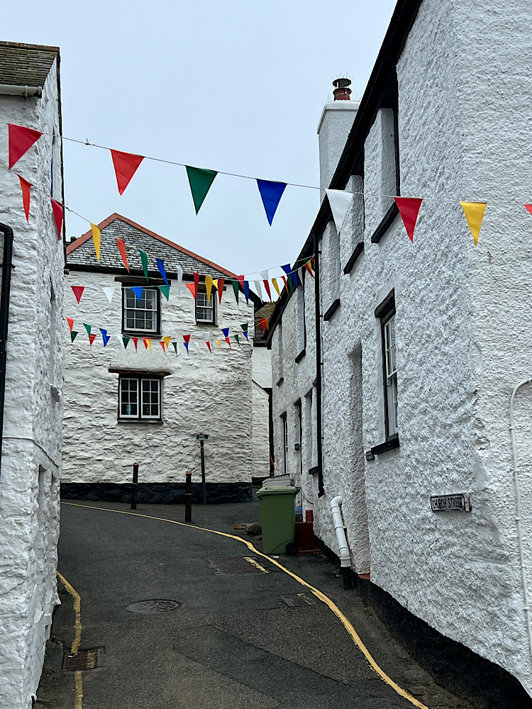 Viel gibt es außerdem erst einmal nicht zu sehen. Überall ist mit bunten Wimpeln geschmückt, am 30.07. findet ein Straßen-Fest statt, aber heute ist kaum jemand unterwegs. Unten im kleinen Hafen führen ein paar Hunde ihre Menschen aus und fertig. Also genau das, was ich suche – Ruhe!