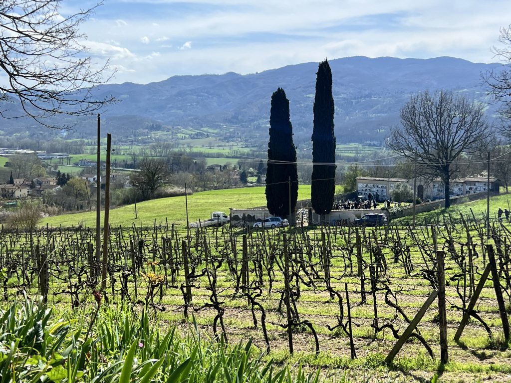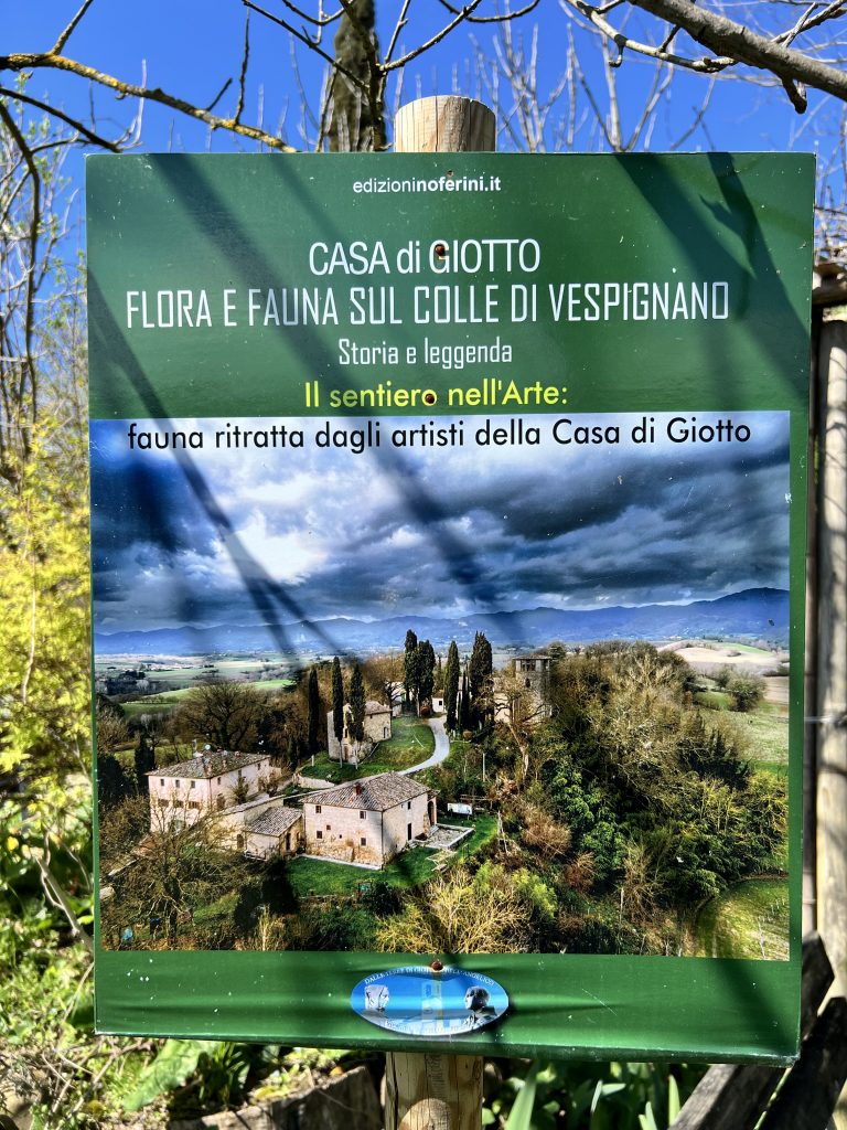 Ich folge den Hinweisschildern zu „Giotto Casa natale“ kurz vor Vicchio in Vespignano und auf dem Parkplatz nahe des Gebutshauses stehen schon einige Autos. Hier muss es sein und obwohl Montag ist, scheint das Museum ja geöffnet zu haben. Die Umgebung ist schon einmal wunderschön – einfach „malerisch“😉