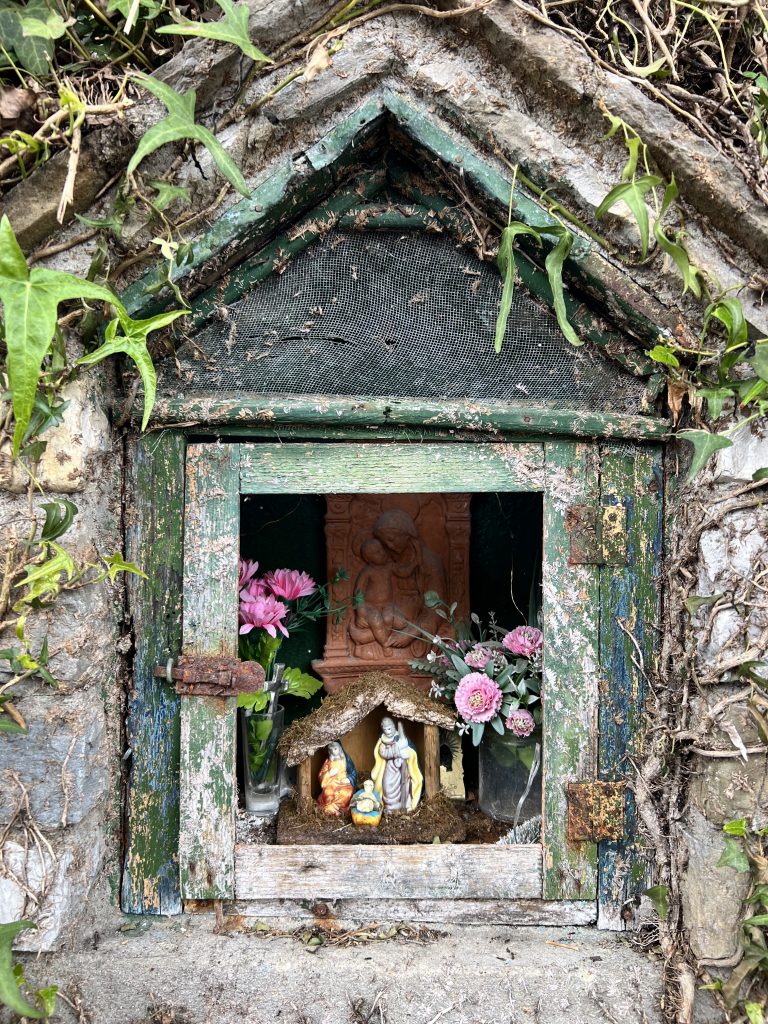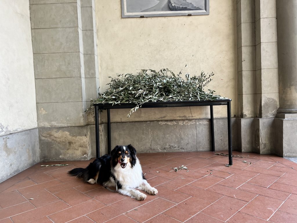 Das Örtchen Vicchio selbst ist klein, verschlafen und obwohl auch der Maler Fra Angelico hier das Licht der Welt erblickte, kann man in der Stadt kein einziges Bild der beiden Berühmtheiten betrachten. Aber beim Gang durch die Stadt hab ich dann doch noch etwas entdeckt: Heilige Reste. Ja genau vor der städtischen Kirchentür: die sind bestimmt von gestern übriggeblieben und da der Segensspruch der Nonne geholfen hat und Lunchens Narbe trotz des Arno-Wasser- Bades gut heilt, leg ich meine kleine Gefährtin sofort unter den Olivenzweigsegen-Tisch. Kann ja auch nur helfen…