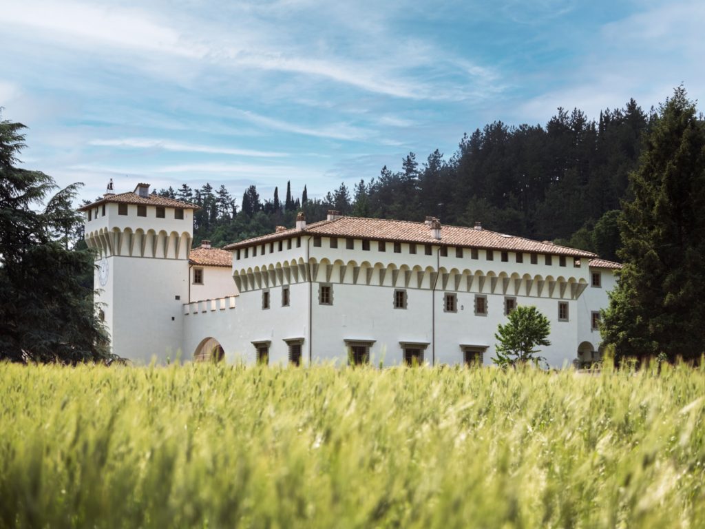 Angelo meint, wir könnten doch mal das Tal des Sieve-Flusses entlangfahren, da gäbe es viel zu sehen. Also starten wir gegen 11:00 gemütlich in Richtung Vicchio. Am Weg ein auffälliges Gebäude, dass mit gestern schon direkt an der Hauptstrasse zwischen San Piero und Barberino ins Auge gestochen ist. 1450 ließen hier die Medici auf den Resten der Festung ihrer Vorgänger, der bislang herrschenden Ubaldini Familie, eine beeindruckende Villa errichten, die Villa di Cafaggiolo.