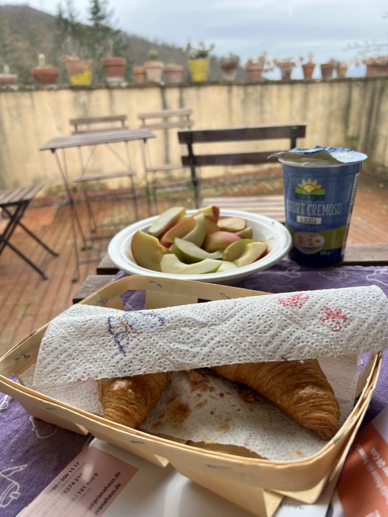 Es regnet – schade, aber eigentlich nimmt dieses Wetter auch ein bisschen das Tempo raus. Wir stapfen morgens durch den Niesel und bummeln in den Tag. Der Kaffee dampft in der kühlen Küche und Angelo bringt ofenfrische Croissants – was für eine nette Geste. Dann schmöcker ich noch ein bisschen in meinen Kräuterbüchern und so langsam kommt dann doch ein Lüstchen auf, etwas zu unternehmen. So den ganzen Tag nur verbummeln, schaff ich eben doch nicht.