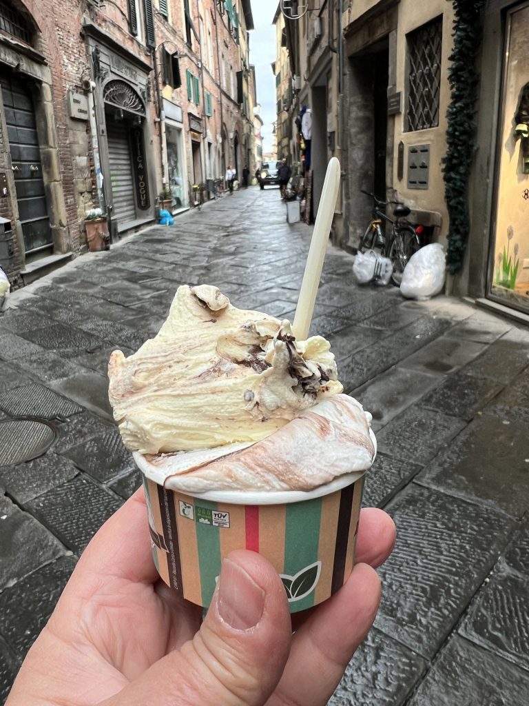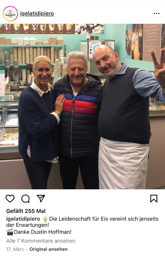 Als Nachtisch gibt es ein Eis im Laden um die Ecke und auch hier in der Gelateria hat Dustin seine Spuren hinterlassen. „Was für ein freundlicher und einfacher Mensch“, meint die Verkäuferin verträumt. Ihr Lieblingsfilm sei „Tootsie“, sagt sie und übergibt mir zwei Kugeln leckersten, hausgemachten Eises.