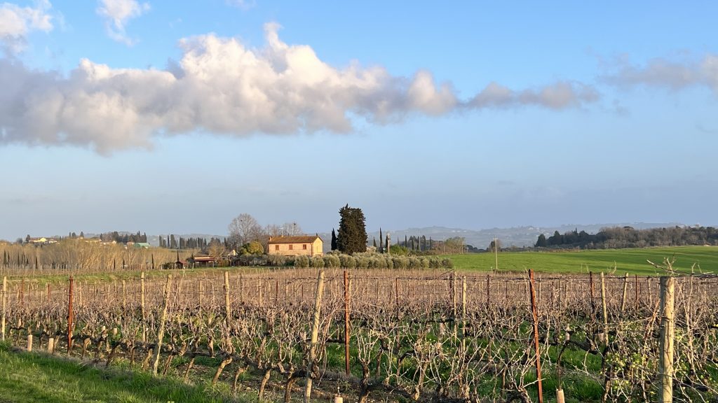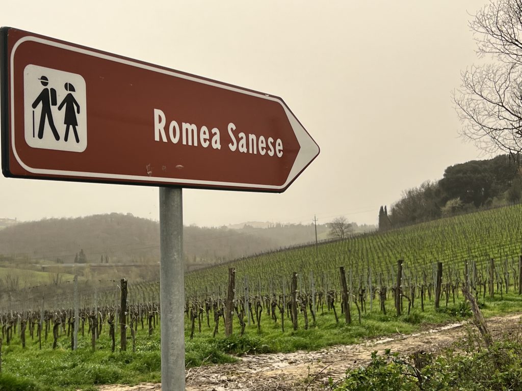 Ein Stück laufen wir auf der Romea Sanese – einer alten Verbindungsstraße zwischen Florenz und Rom, die heute als Wanderweg mit 83 km Länge und vier Etappen genutzt wird.