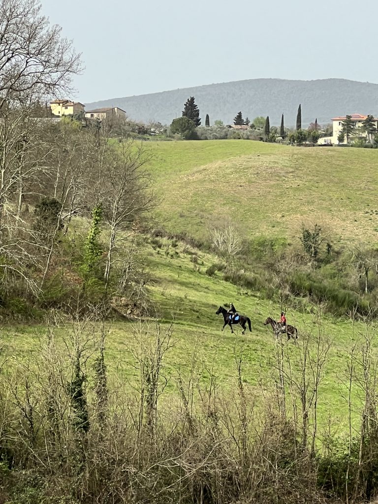 Eine Autostrada und die Bahnstrecke nach Sienna durchschneiden die Landschaft, aber ansonsten ist es herrlich einsam, nicht ein einziger Wanderer kreuzt unseren Weg, nur ein paar Reiter sind unterwegs. Und plötzlich hat der Osterhase doch schon etwas für Luna versteckt… welche Freude.