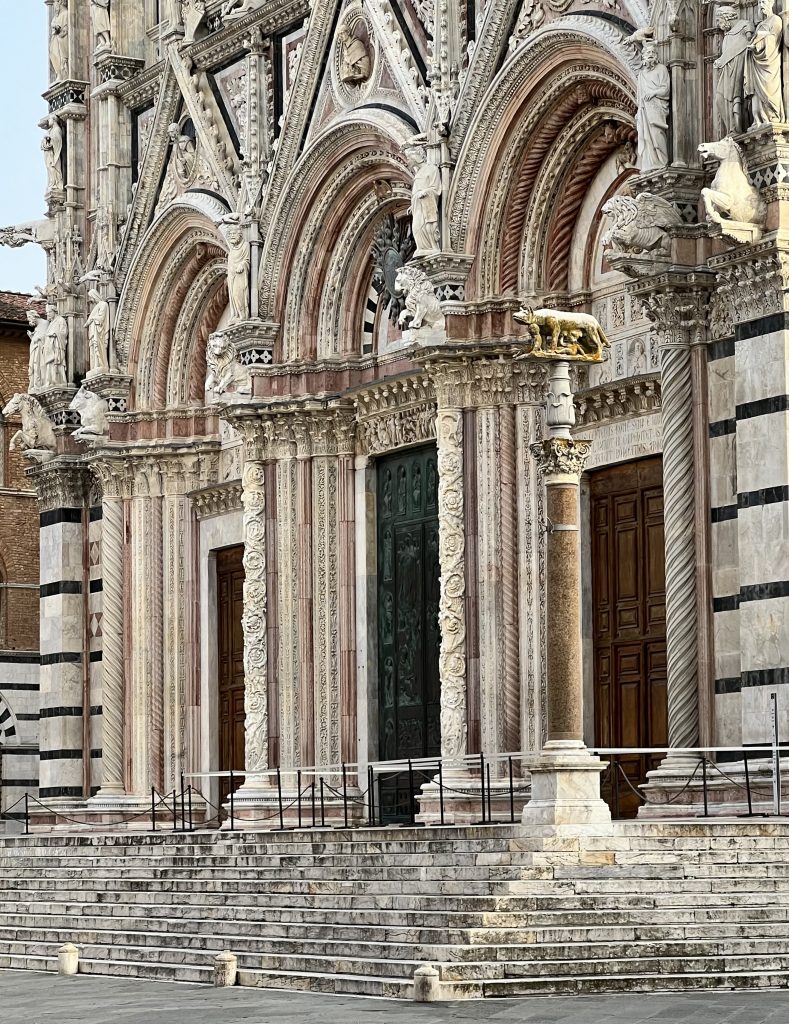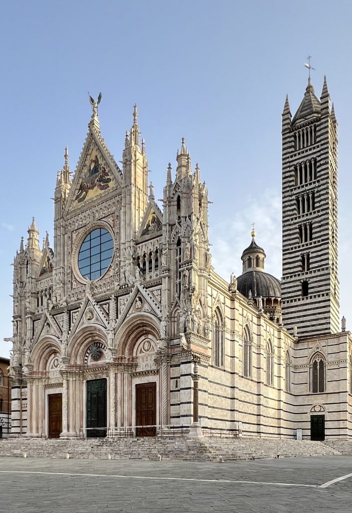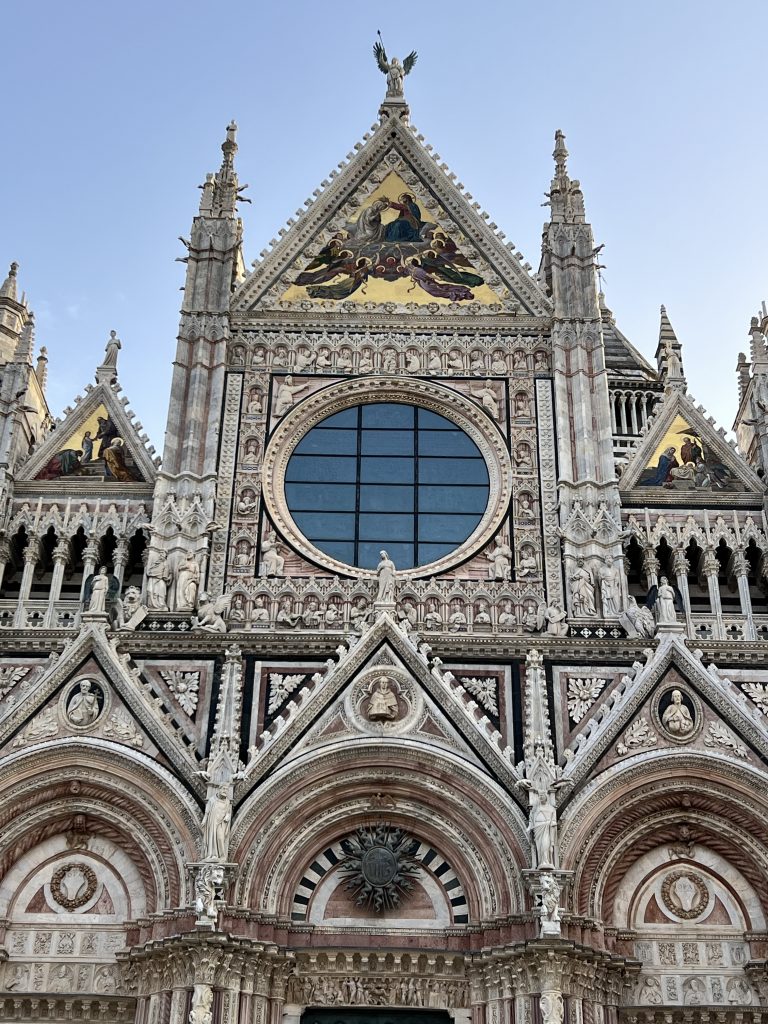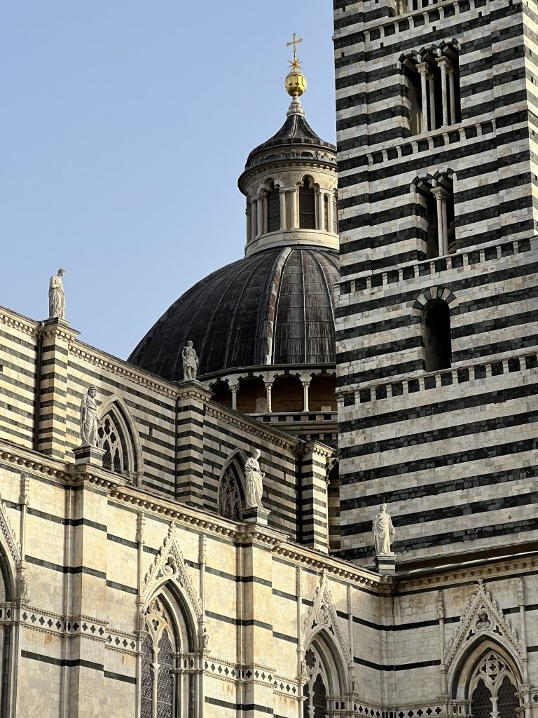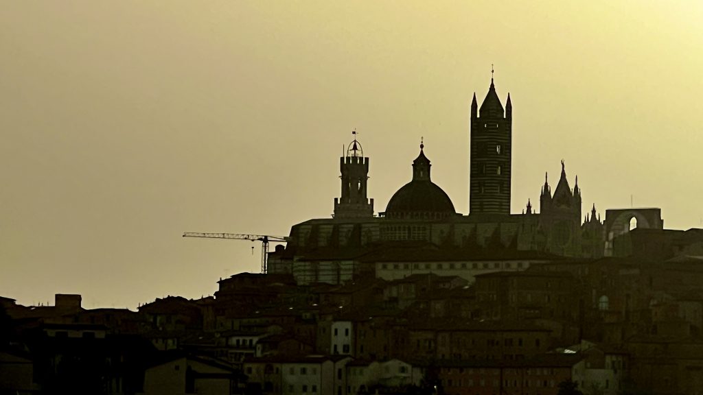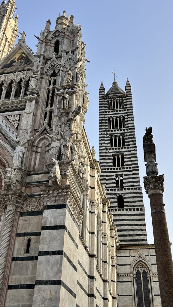 Ich bummle an den Cafes vorbei, die langsam ihre Stühle rausstellen, sehe den alten Siennesern beim Kaffeetrinken in der Sonne zu, buche mir online ein Ticket für den Dom und lasse mich gemeinsam mit zwei Müllmännern im Caffe Greco zum Frühstück nieder. Die freundliche Kellnerin verrät mir das WLAN-Passwort und so kann ich mir ein Stündchen meinem Blog widmen.