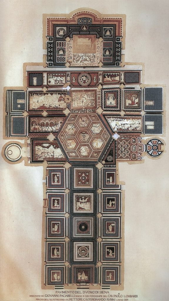 Ist er freigelegt, bräuchte man allein dafür einen Tag, um alle abgebildeten Legende, Heiligengeschichten und Ornamente zu entschlüsseln. Hier sieht man alle Mamor-Bilder des Kirchenbodens ohne Abdeckungen.
